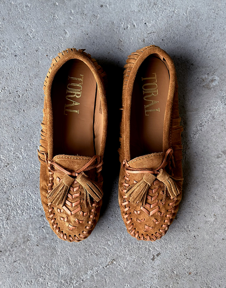 Deze Toral Momo fringe cognac loafer passen perfect bij de western trend van dit seizoen. Deze toffe fringe loafers dragen heerlijk, perfect om net dat western randje toe te voegen aan je look. De loafers vallen normaal van maat.. Tof onder zowel een wijdere broek als een cropped jeans.