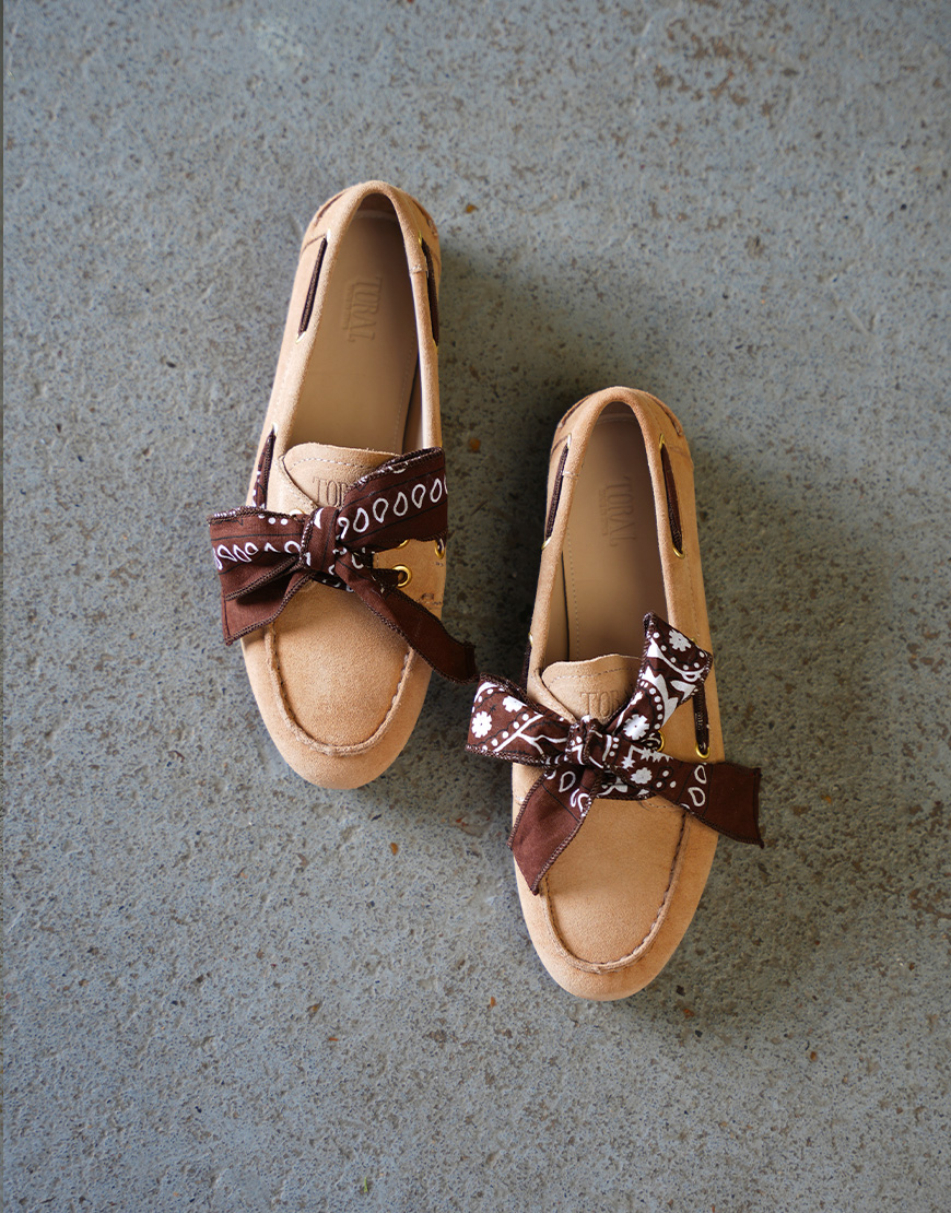 Deze Toral Nahua bandana marron loafer mousse zijn wat de trend van dit seizoen. Uitgevoerd in de perfecte camel tint met een bandana sjaaltje als veters. Deze loafers dragen fijn en combineer je makkelijk met al je looks. De maat valt normaal.