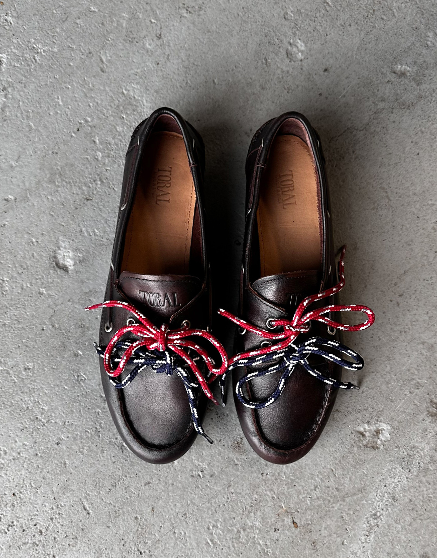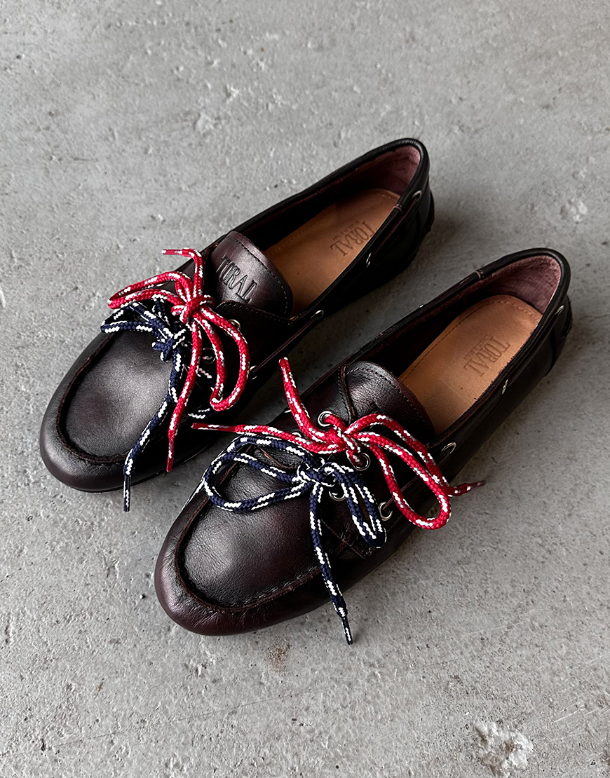 Deze Toral Nahua leren loafers in dark brown zijn natuurlijk de trend van dit jaar. Deze mooie leren loafer draagt heerlijk en wordt geleverd met een leren veter en 2 gekleurde veters. Perfect om net preppy randje toe te voegen aan je look. De loafers vallen normaal van maat en zijn ook verkrijgbaar in cognac. Tof onder zowel een wijdere broek als een cropped jeans.